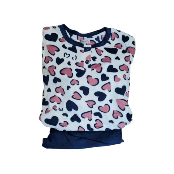 Ανακάλυψε την απόλυτη άνεση και ζεστασιά με αυτή τη γυναικεία βελούτε πιτζάμα. Η μπλούζα ξεχωρίζει με το παιχνιδιάρικο σχέδιο καρδούλες και τη μοντέρνα μάρσιπο τσέπη, προσφέροντας στυλ αλλά και πρακτικότητα. Συνδυάζεται με μονόχρωμο παντελόνι, φτιαγμένο από απαλό και ζεστό βελουτέ ύφασμα, ιδανικό για χαλάρωση στο σπίτι ή έναν ξεκούραστο ύπνο.