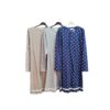 Κομψή και άνετη γυναικεία νυχτικιά σε γήινη μπεζ απόχρωση με διακριτικό all-over μοτίβο. Διαθέτει στρογγυλή λαιμόκοψη με κουμπιά στο στήθος και διακοσμητικό φιόγκο, προσφέροντας θηλυκή και ρομαντική πινελιά. Το τελείωμα με δαντέλα χαρίζει επιπλέον κομψότητα, ενώ το μήκος πάνω από το γόνατο προσφέρει άνεση και ευκολία κινήσεων.
