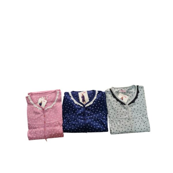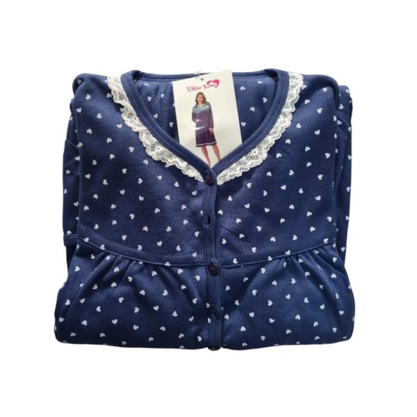 Ανακαλύψτε την άνεση και την κομψότητα με αυτή τη γυναικεία νυχτικιά plus size σε σκούρο μπλε χρώμα με λευκά πουά σχέδια. Διαθέτει μακρύ μανίκι, απαλή υφή και χαλαρή γραμμή για άνετη εφαρμογή. Η λεπτομέρεια με δαντέλα στο ντεκολτέ και στο τελείωμα προσδίδει θηλυκότητα και ρομαντικό στυλ. Ιδανική επιλογή για καθημερινή χρήση, προσφέροντας χαλάρωση και στυλ σε κάθε βραδιά.
