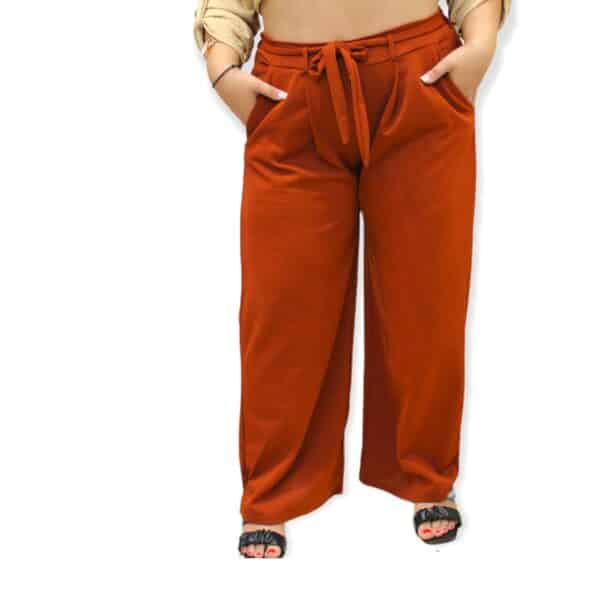 Κρεπ παντελόνα plus size με ζώνη από το ίδιο ύφασμα , τσέπες και λάστιχο στο πίσω μέρος της μέσης .