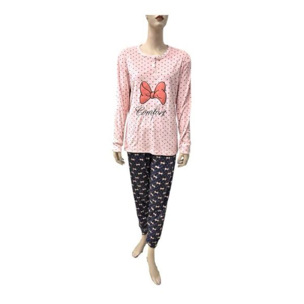 Καλωσορίσατε στον κόσμο των ονείρων. Μοναδικές και ανανεωμένες Πιτζάμες προστέθηκαν στην νέα μας συλλογή που συνδυάζουν άνεση και στυλ. Προσφέροντας μια μοναδική εμπειρία. Η Πιτζάμα βελουτέ με φιόγκο σε βελουτέ ποιότητα , άνετη γραμμή. Διαθέτει σχέδιο πουά στην μπλούζα με φιογκάκι και σκούρο παντελόνι με σχέδιο φιογκάκι .Μια ζεστή επιλογή που θα λατρέψεις.