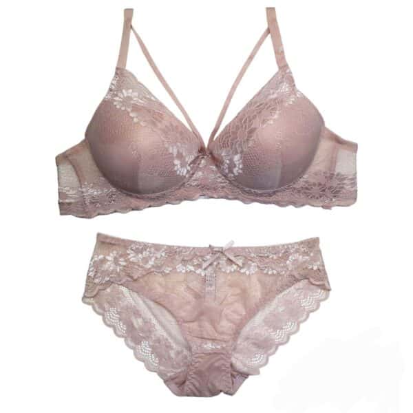 Σετ γυναικεία Εσώρουχα με Δαντέλα Cup B, σε μπεζ χρώμα.
